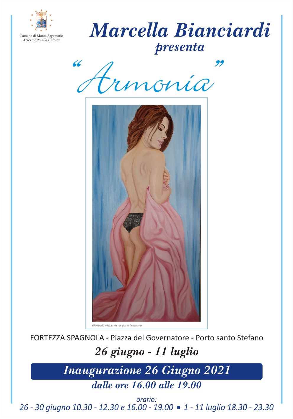 Prima mostra della stagione alla Fortezza Spagnola di Porto S.Stefano, dal 26 giugno all’11 luglio Marcella Bianciardi espone le sue opere in una rassegna intitolata “Armonia”.