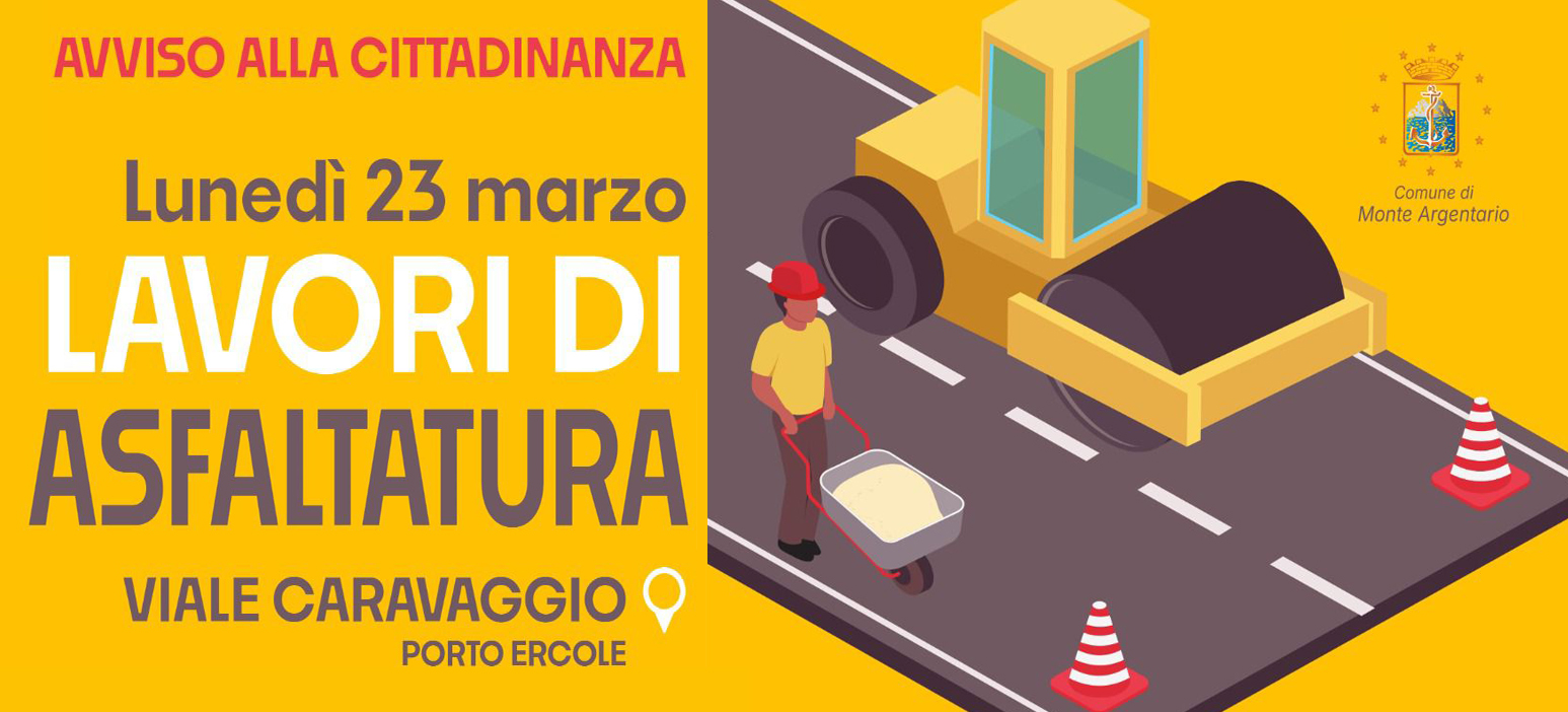 Lunedì 23 marzo inizierà l’asfaltatura di Viale Caravaggio a Porto Ercole. I lavori partiranno nei pressi del bivio con via delle Buche, proseguiranno lungo Viale Caravaggio fino all’incrocio con via dei Molini e prevedono la fresatura e il rifacimento del tappeto di usura.