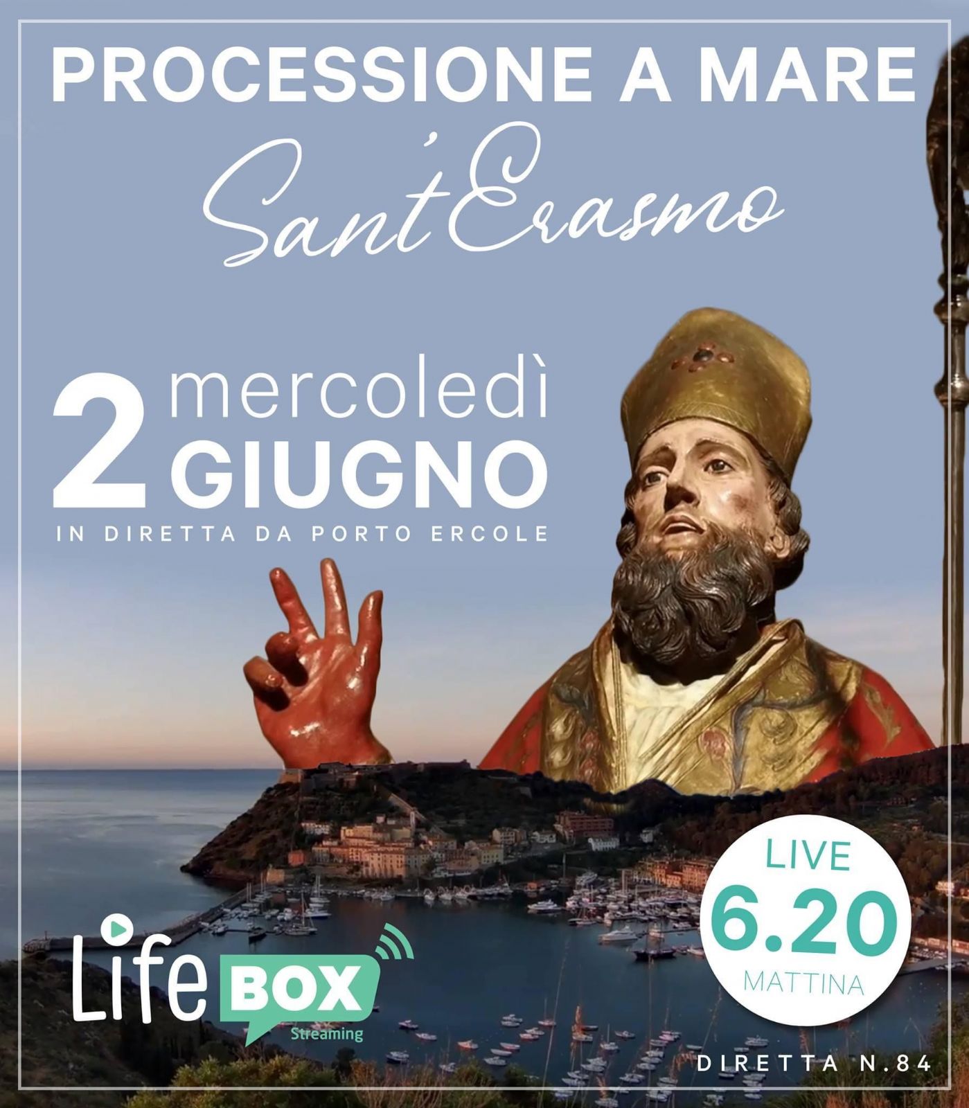 Mercoledì 2 giugno - PROCESSIONE A MARE di Sant'Erasmo in diretta streaming sulla pagina Facebook "Livebox streaming" - dalle ore 06:20 del mattino da Porto Ercole.