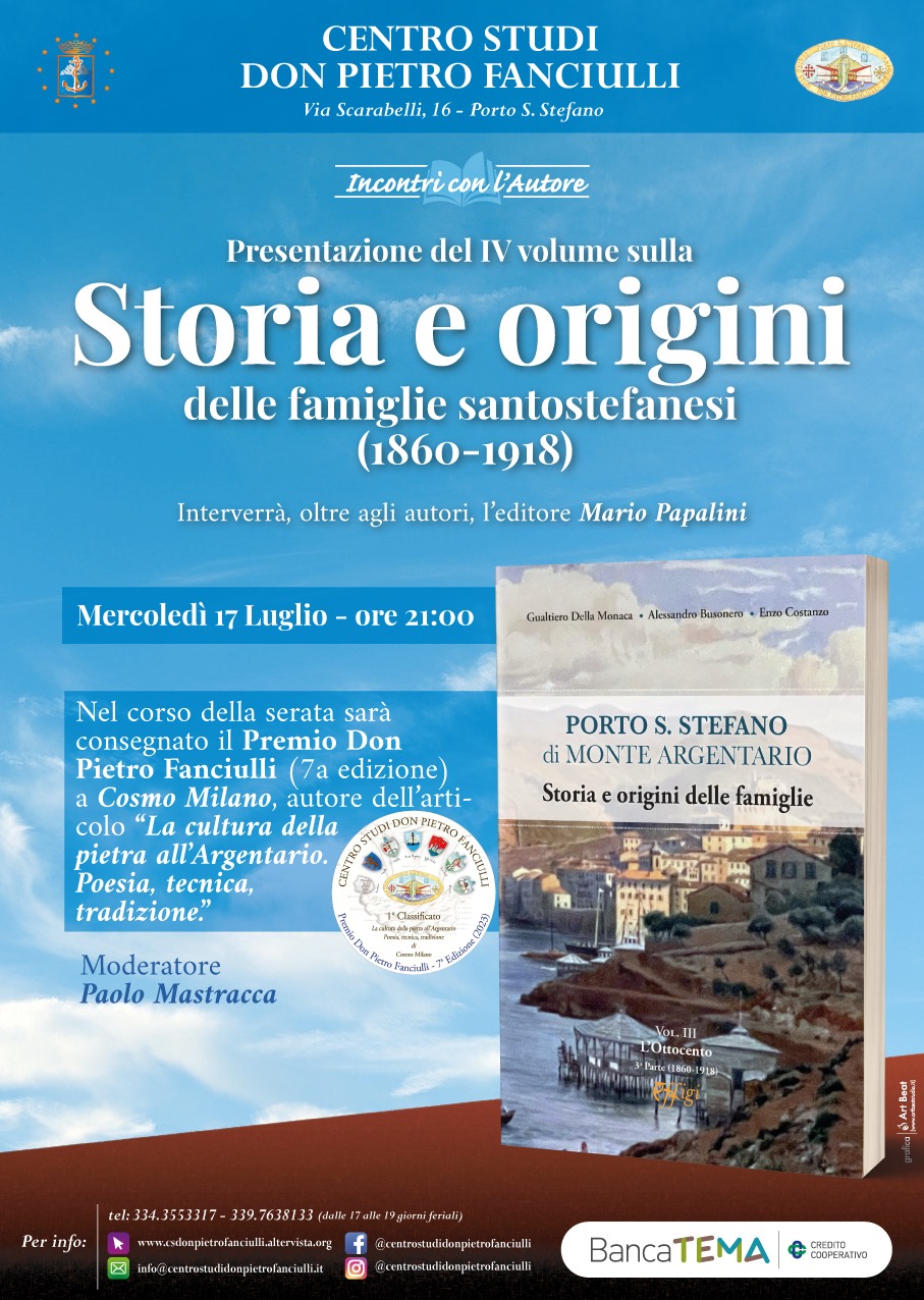 Nel corso della serata verrà consegnato il Premio Don Pietro Fanciulli a Cosmo Milano