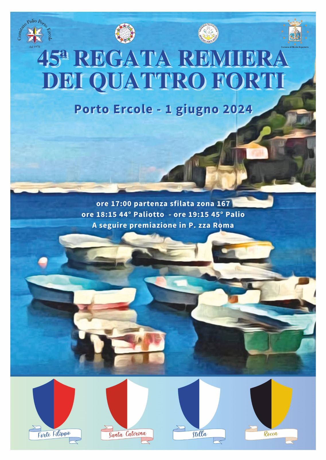 La regata remiera dei Quattro Forti è una competizione che si svolge nella rada di Porto Ercole e che vede sfidarsi le quattro fortificazioni che dominano il porto
