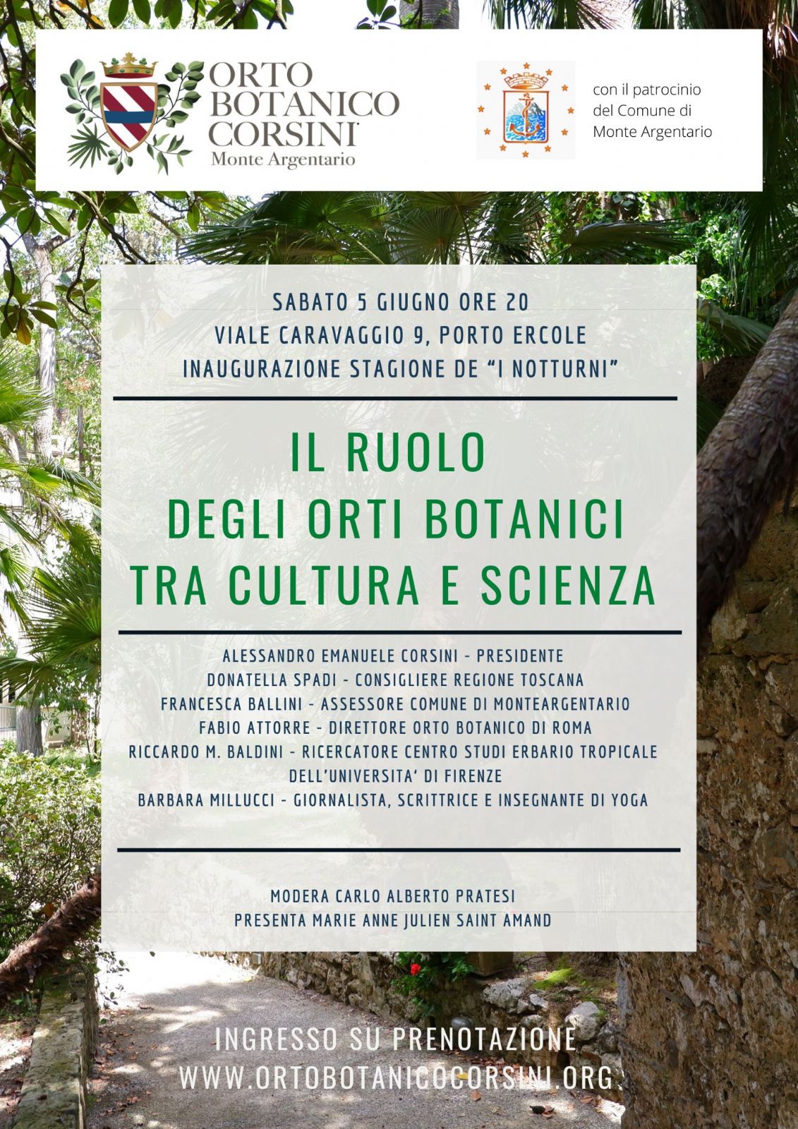 Con il patrocinio del Comune di Monte Argentario, sabato 05 giugno alle ore 20.00 l'Orto Botanico Corsini inaugura la stagione de "I Notturni".