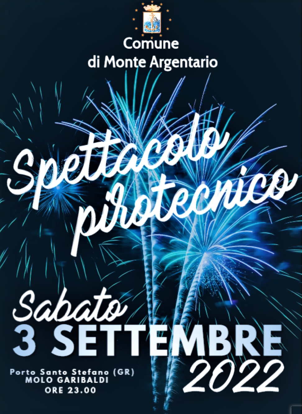 L’azienda Pyroitaly è la prima volta che opera a Monte Argentario, da oltre 25 anni si pone come punto di riferimento per la realizzazione di spettacoli pirotecnici in Italia e all’estero. Nata come piccola realtà, in pochi anni ha affermato la propria professionalità nel panorama nazionale, successo dopo successo, fino ad ottenere prestigiosi riconoscimenti in contesti anche internazionali in un’ottica imprescindibile di passione, modernità e sicurezza. Il loro operato è finalizzato alla creazione di un disegno coreografico ricercato coadiuvato dalla esperienza dei migliori artigiani nazionali ed europei con i quali hanno sviluppato, in esclusiva, un’articolata gamma di prodotti utile con particolare attenzione al colore, alle geometrie e figure dei diversi effetti. Hanno collaborato alla realizzazione di Festival Internazionali quali quelli di Hannover e Pyronale in Germania, di Knokke (Belgio), di Orléans (Francia) fino alla partecipazione diretta dell’azienda, dal 2017, al Festival Internazionale di Malta con la vittoria del Primo Premio, al Festival di Blanes (Spagna) nel 2018 dove hanno ottenuto il secondo Premio e al recente Festival di Pamplona, in occasione dei festeggiamenti di San Fermin 2022, dove hanno conseguito il Primo Premio.