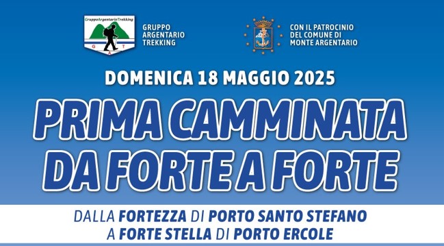 Il 18 maggio si terrà la prima edizione della camminata (non competitiva) denominata “Da Forte a Forte”, organizzata dal Gruppo Argentario Trekking con il Patrocinio del Comune di Monte Argentario.