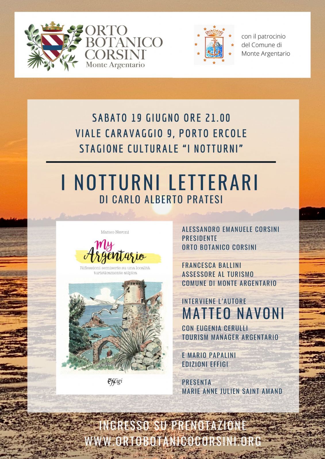 L'Orto botanico Corsini apre la serie dei Notturni Letterari di Carlo Alberto Pratesi con la presentazione del libro My Argentario, di Matteo Navoni.