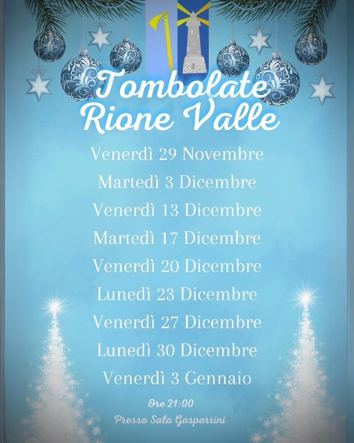 Tombolate rionali organizzate dal Rione Valle presso la sala Gasparini per le festività natalizie