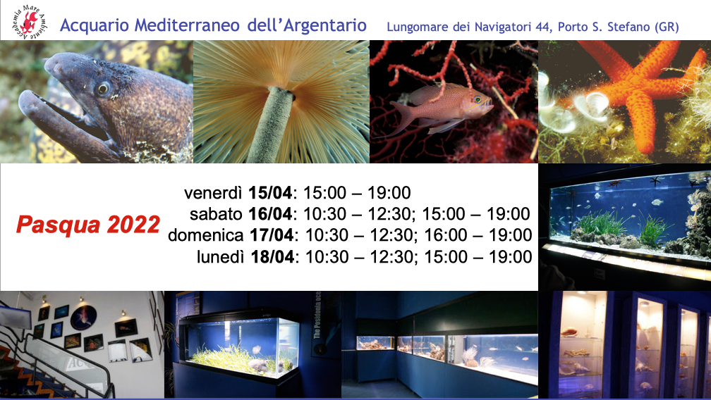 Durante il week-end di Pasqua l'Acquario Mediterraneo dell'Argentario sarà aperto nei seguenti orari: