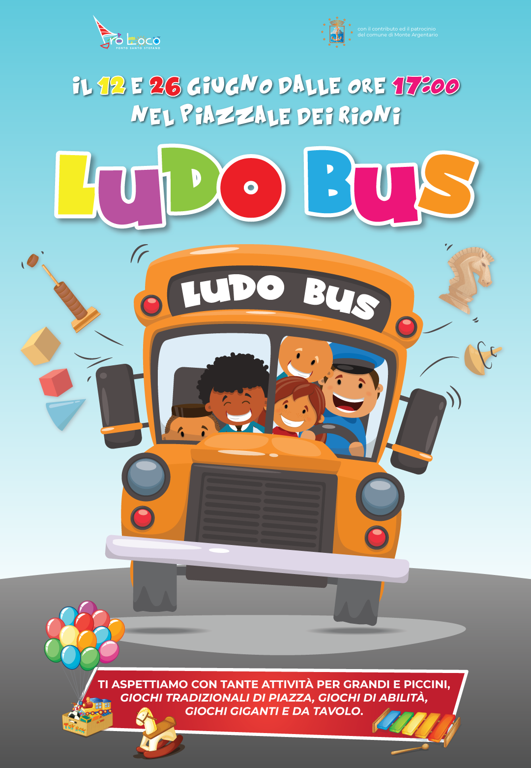 Il Piazzale dei Rioni si trasforma in luogo di gioco e divertimento con il 𝐋𝐮𝐝𝐨𝐛𝐮𝐬 𝐝𝐞𝐥𝐥𝐚 𝐌𝐚𝐫𝐞𝐦𝐦𝐚. La ludoteca itinerante farà tappa anche a Porto Santo Stefano con un doppio appuntamento. Due domeniche pomeriggio, 12 e 26 giugno dalle ore 17,00, all’insegna del divertimento per i bambini.
