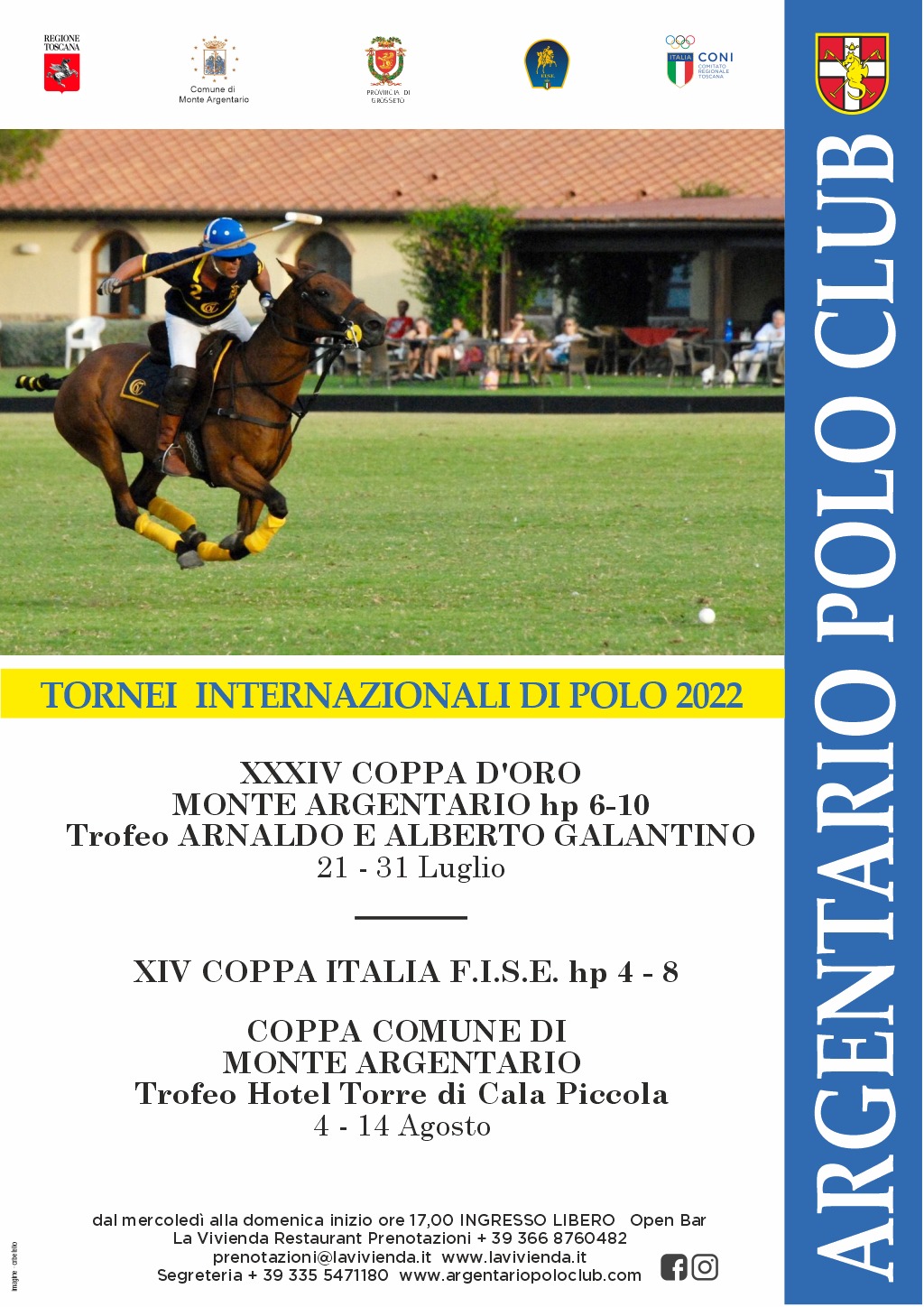 Il 21 luglio avrà inizio una delle Coppe più prestigiose a livello internazionale la XXXIV Coppa d’Oro Monte Argentario - Trofeo Arnaldo e Alberto Galantino. Giunta alla 34° edizione la Coppa d’Oro richiama giocatori da tutto il mondo e quest’anno per la prima volta all’Argentario ci saranno 2 squadre provenienti dall’Egitto, che si uniranno a giocatori di Stati Uniti, Slovacchia, Ungheria, Brasile e ovviamente dalla patria del polo, l’Argentina. Da tre anni il torneo è dedicato alla memoria di Arnaldo e Alberto Galantino, fondatori dell’Argentario Polo Club. Dopo il successo del 2019, la direzione del Club organizza una Cena di Beneficenza in favore dell’Associazione La Farfalla che opera sul territorio maremmano e si occupa di assistenza domiciliare ai malati terminali per la serata del 28 luglio. Sarà una festa con Asado (grigliata argentina) e musica dal vivo con gli Acoustic Age per ricordare Arnaldo e Alberto come avrebbero voluto loro, sempre entusiasti di raccogliere tutti intorno ad una griglia e parlare ovviamente di polo.