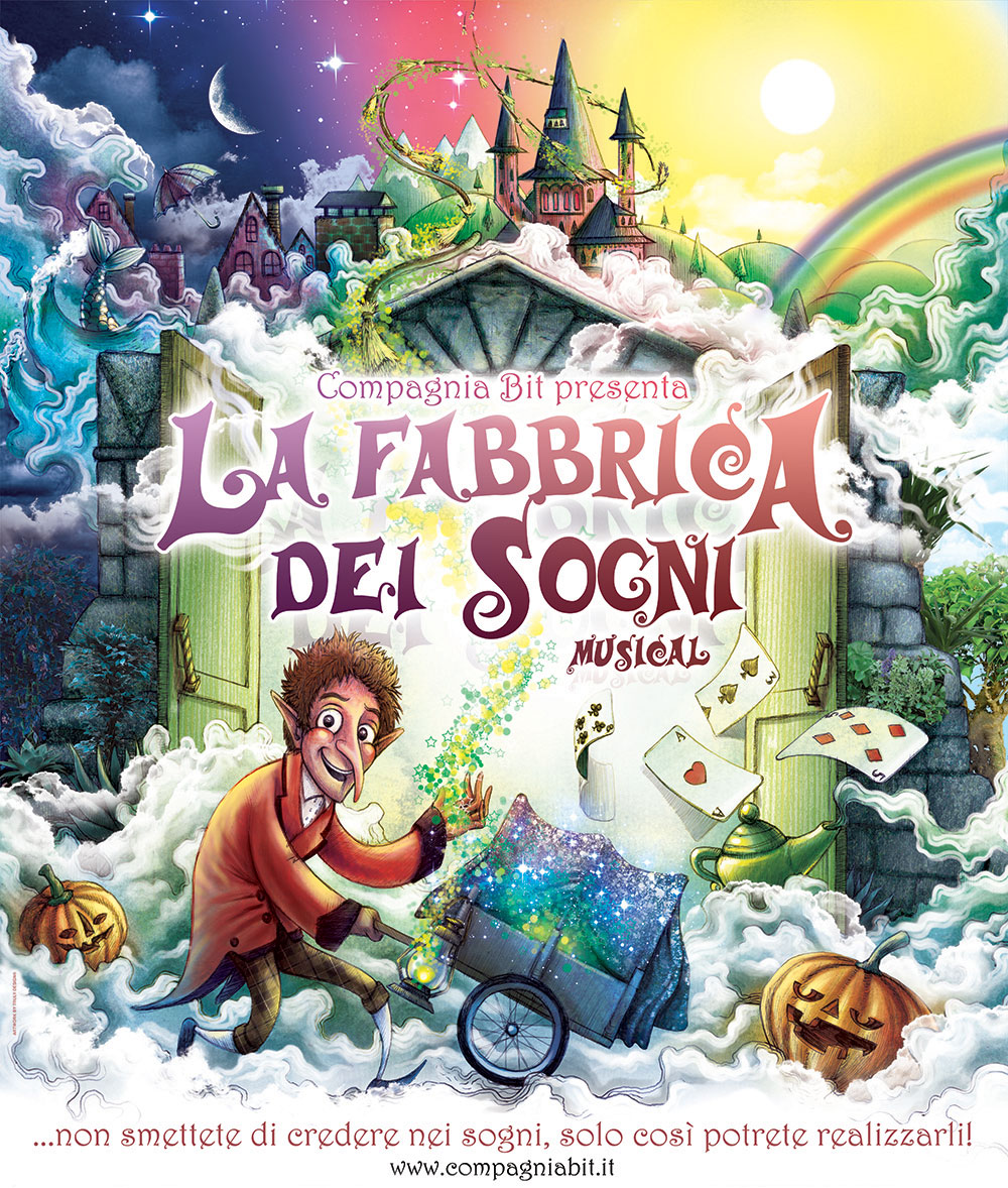 La Fabbrica dei sogni è la fabbrica che abbiamo sempre sognato, dove si produce tutta la nostra immaginazione. Nella Fabbrica dei sogni costruire sogni non costa nulla; in questo luogo magico possiamo tornare a sognare e salire sul tappeto volante di Aladdin verso l’oriente, oppure attraversare boschi e regni incantati e volare con Mary Poppins. E' nello spettacolo della compagnia Bit che si verifica tutta la magia del teatro. Il sogno si realizza sul palcoscenico, nelle luci e nei colori dei costumi; ci riscopriremo liberi di fantasticare come bambini. Quando tutto sta per iniziare, uno strano individuo ci introduce in questo meraviglioso viaggio, ricco di colpi di scena e fantasia.