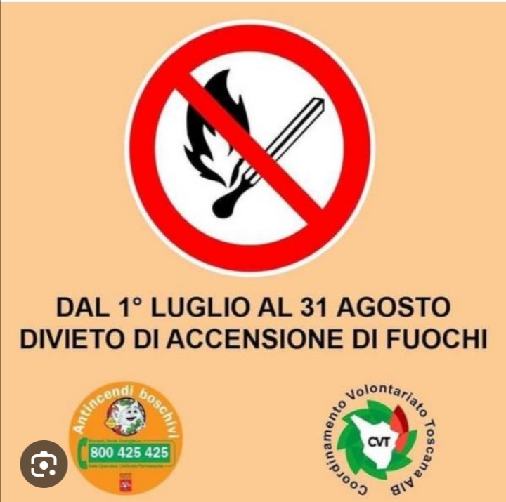 È vietata inoltre qualsiasi accensione di fuochi, ad esclusione della cottura di cibi in bracieri e barbecue situati in abitazioni o pertinenze e all'interno delle aree attrezzate.