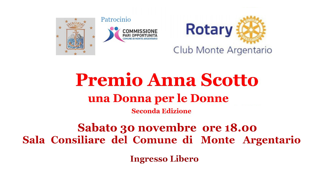 Il Premio, organizzato dal Rotary Club Monte Argentario, è nato nel 2023 in memoria dell’avvocato Anna Scotto che a soli 59 anni si è dovuta arrendere ad una terribile malattia. Molto conosciuta, ha sempre sostenuto i diritti delle donne sia nella professione che come componente della Commissione Pari Opportunità del Comune di Monte Argentario e come socia del Rotary Club Monte Argentario dove ha ricoperto anche la carica di presidente.
