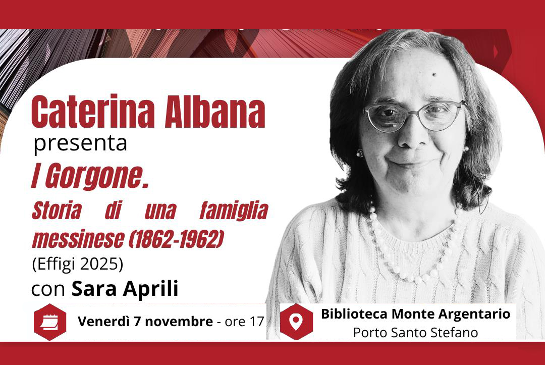 Nell’ambito della rassegna "L'altro genere. Scrittrici di Maremma", organizzata dalla rete GROBAC per ribadire il ruolo delle biblioteche come presidio di socialità e cultura del territorio venerdì 7 novembre alle ore 17 presso l'Auditorium Ex-Onmi a Porto Santo Stefano si terrà l’incontro con la scrittrice Caterina Albana che parla del suo “I Gorgone. Storia di una famiglia messinese 1862-1962” (edizioni Effigi) insieme all’insegnante Sara Aprili.