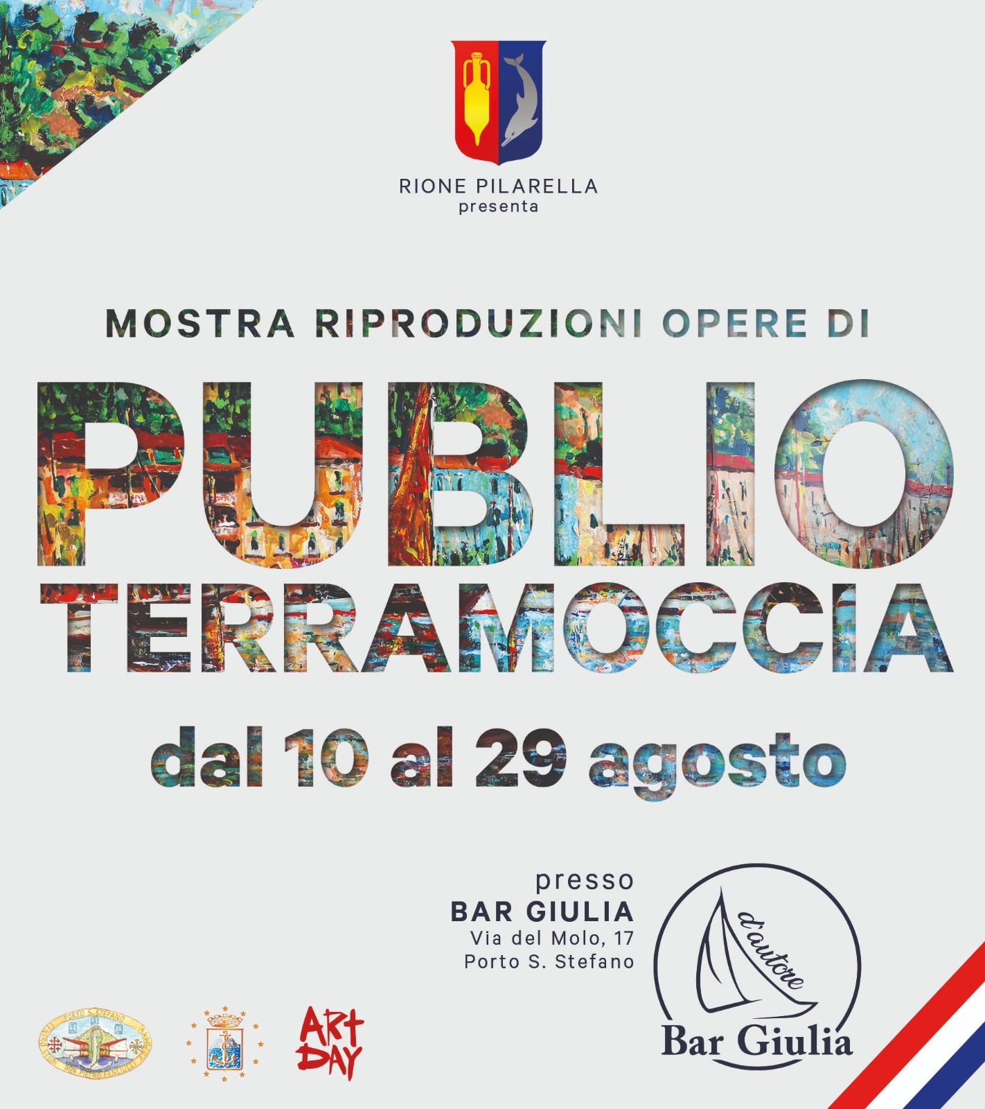Nell’ambito della rassegna Bar Giulia d’Autore, il 10 agosto prende il via nella saletta dell’omonimo bar in via del Molo una mostra dedicata a Publio Terramoccia.