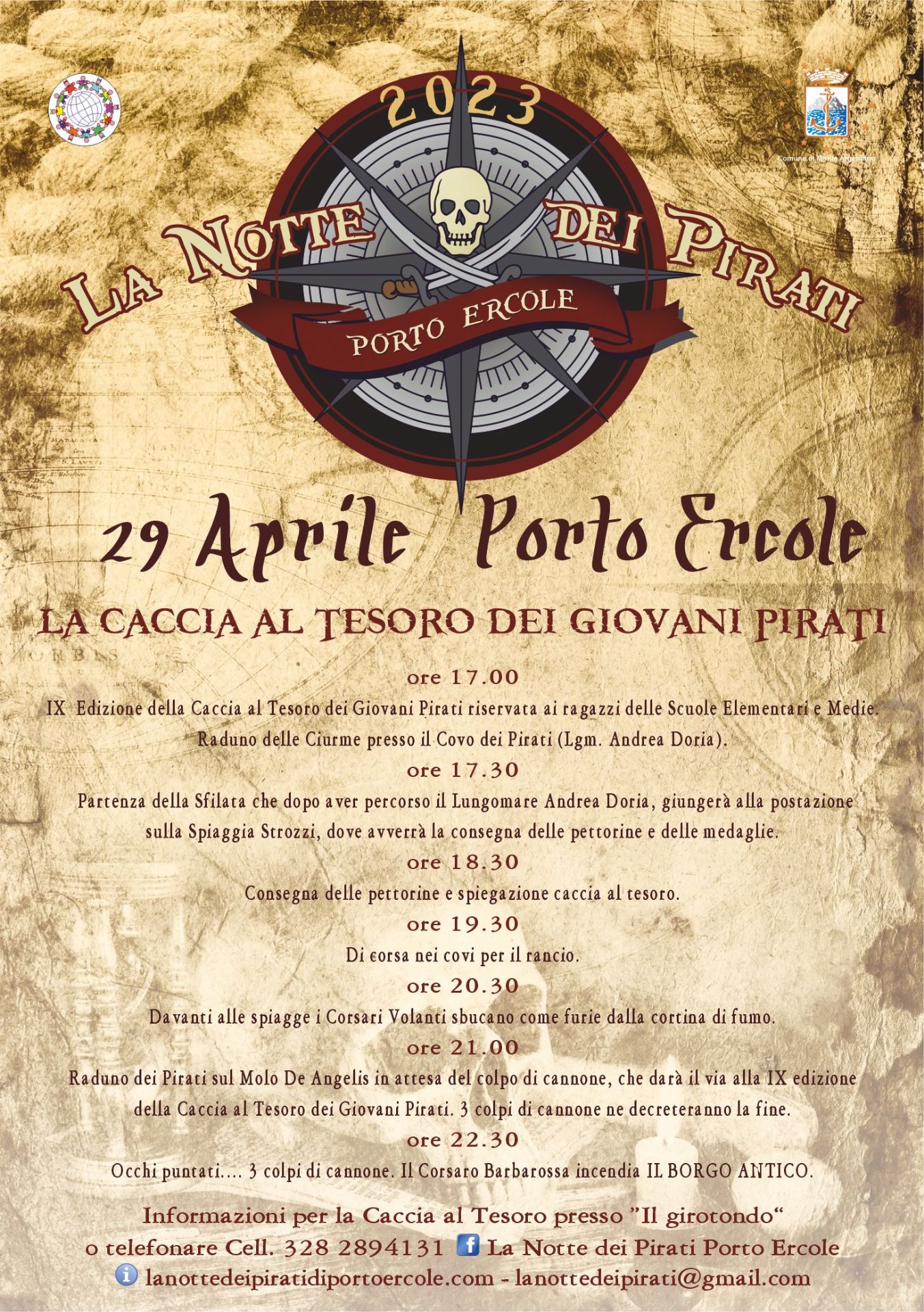 Il programma degli eventi de La Notte dei Pirati quest’anno si arricchisce di una data, sabato 29 aprile saranno protagonisti i giovani pirati con la Caccia al tesoro.