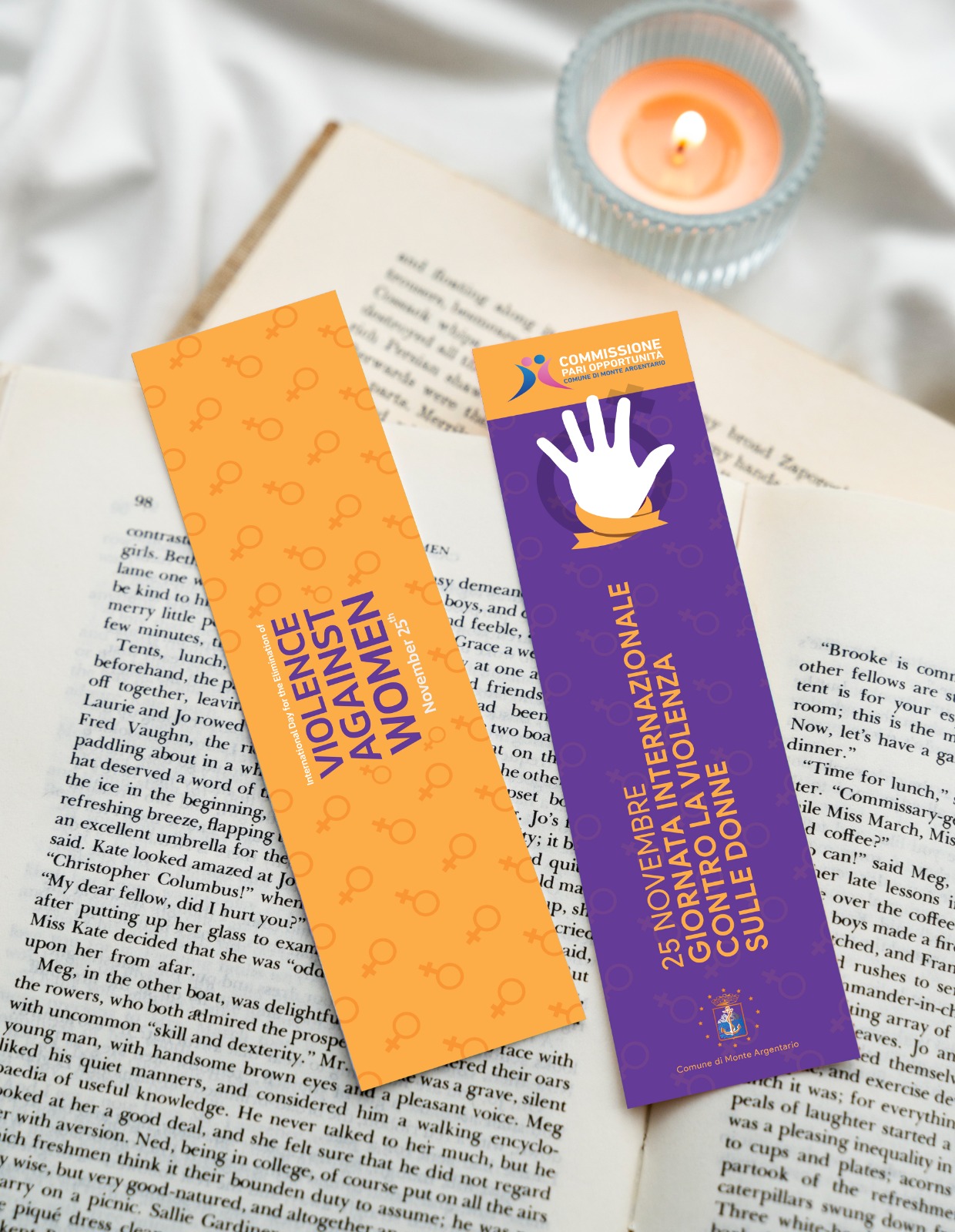 Inoltre, su iniziativa della Commissione Comunale Pari Opportunità nella mattinata di lunedì 25 novembre il sindaco Arturo Cerulli, le assessore Paola Pucino e Chiara Orsini, accompagnati dalla Presidente della Commissione Mara Scotto si recheranno nelle scuole del Promontorio per consegnare a tutti gli alunni dei segnalibro, un gesto semplice e simbolico per sensibilizzare le nuove generazioni e stimolare la riflessione sulle tematiche della violenza di genere.