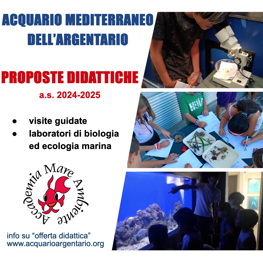 Un vero e proprio percorso didattico utile per favorire l'apprendimento di concetti fondamentali per la comprensione degli equilibri che caratterizzano il Mediterraneo è quello messo a punto dall’Accademia Mare Ambiente all’Acquario comunale dell’Argentario nell’anno scolastico 2024-25. Tante e varie le proposte per gli studenti :