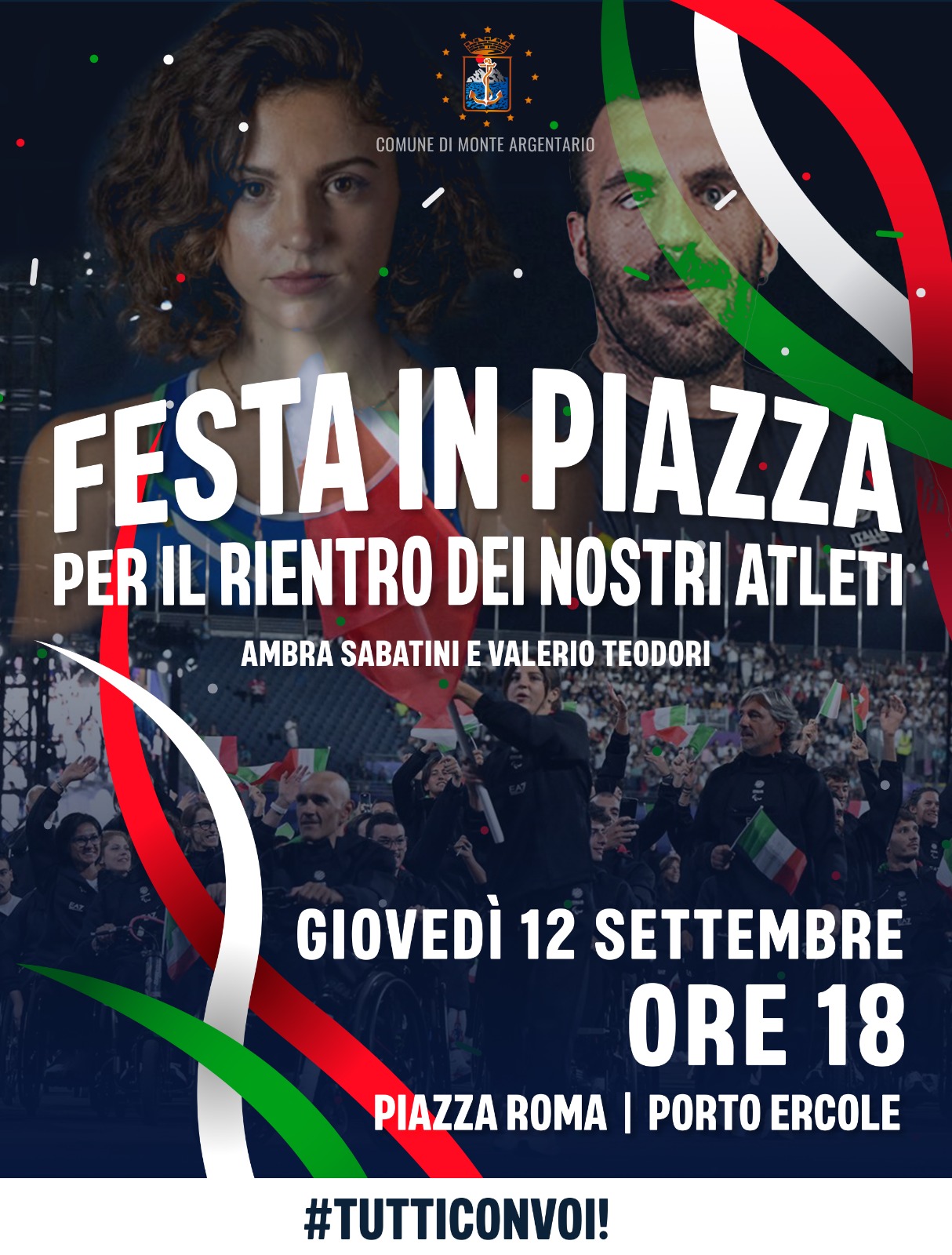 L’Argentario è pronto ad accogliere ed abbracciare i suoi atleti paralimpici. Giovedì 12 settembre dalle ore 18:00 a Porto Ercole in piazza Roma l’Amministrazione Comunale ha organizzato una manifestazione per salutare, al loro rientro dai Giochi Paralimpici di Parigi 2024, Ambra Sabatini e Valerio Teodori.