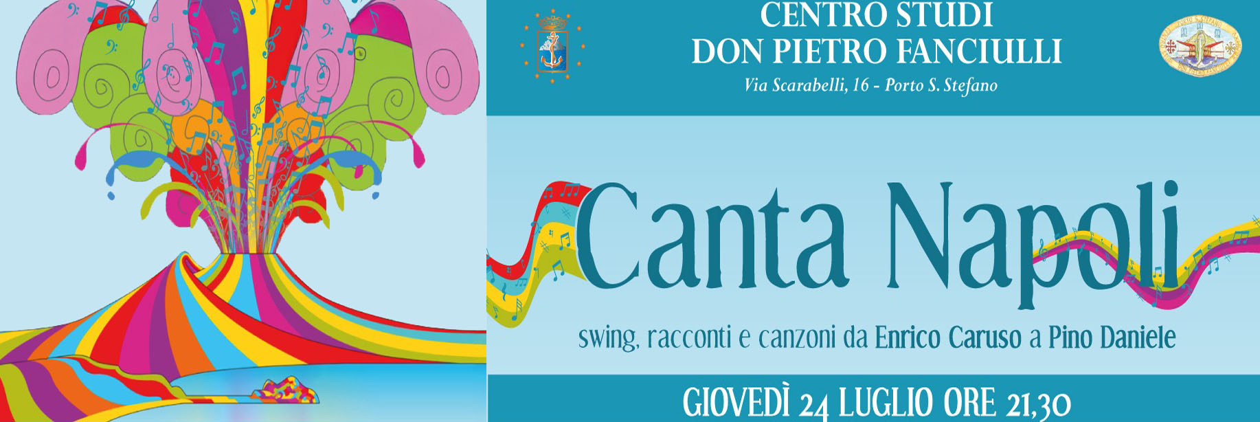 “Canta Napoli, swing, racconti e canzoni da Enrico Caruso a Pino Daniele” è organizzato dal Centro Studi con il patrocinio del Comune di Monte Argentario ed il sostegno dello sponsor Banca Tema.